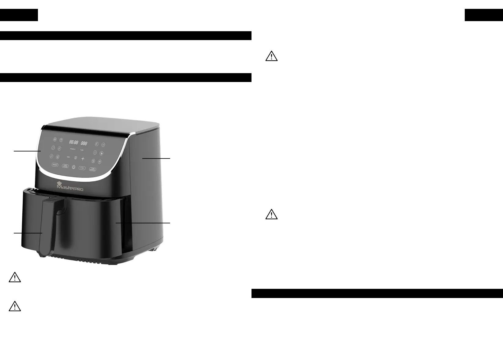 • Beim Heißluftfrittieren wird heißer Dampf über die Luftauslässe freigesetzt. Halten Sie Hände und
