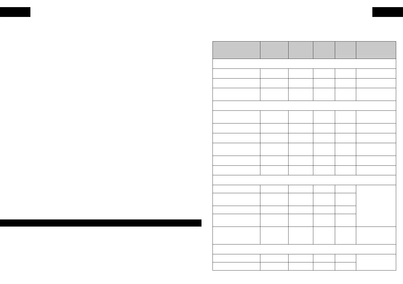 Poniższa tabela pomoże wybrać podstawowe ustawienia składników.