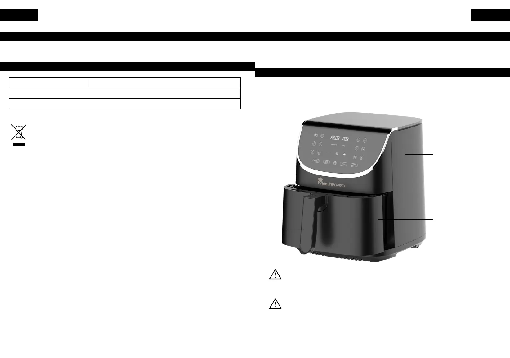 Bergner Europe S.L. poskytuje záruku na spotrebič MASTERPRO po dobu 3 rokov za predpokladu, že