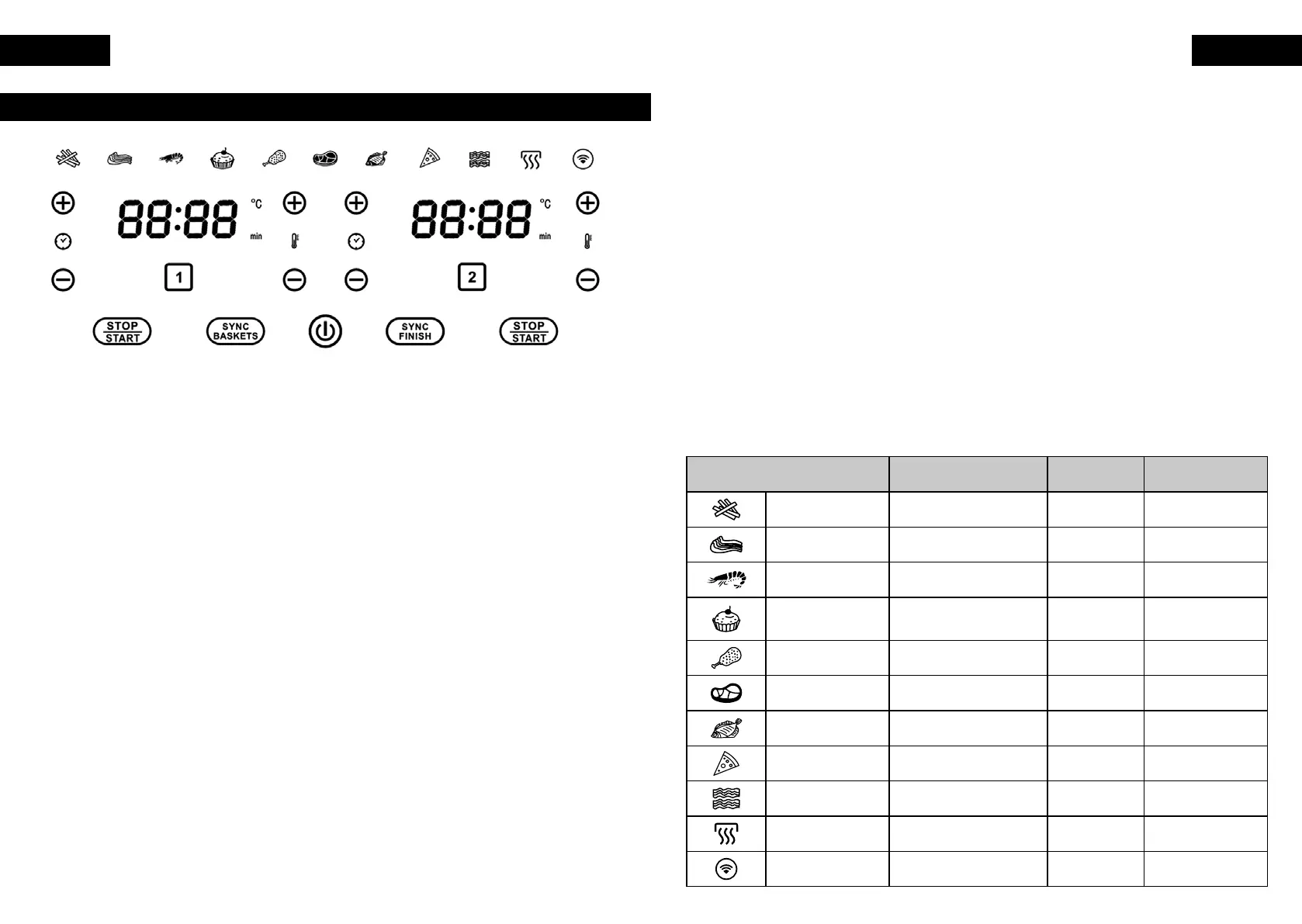• Toccare il cestello 1 o 2 per illuminare il pannello di controllo per