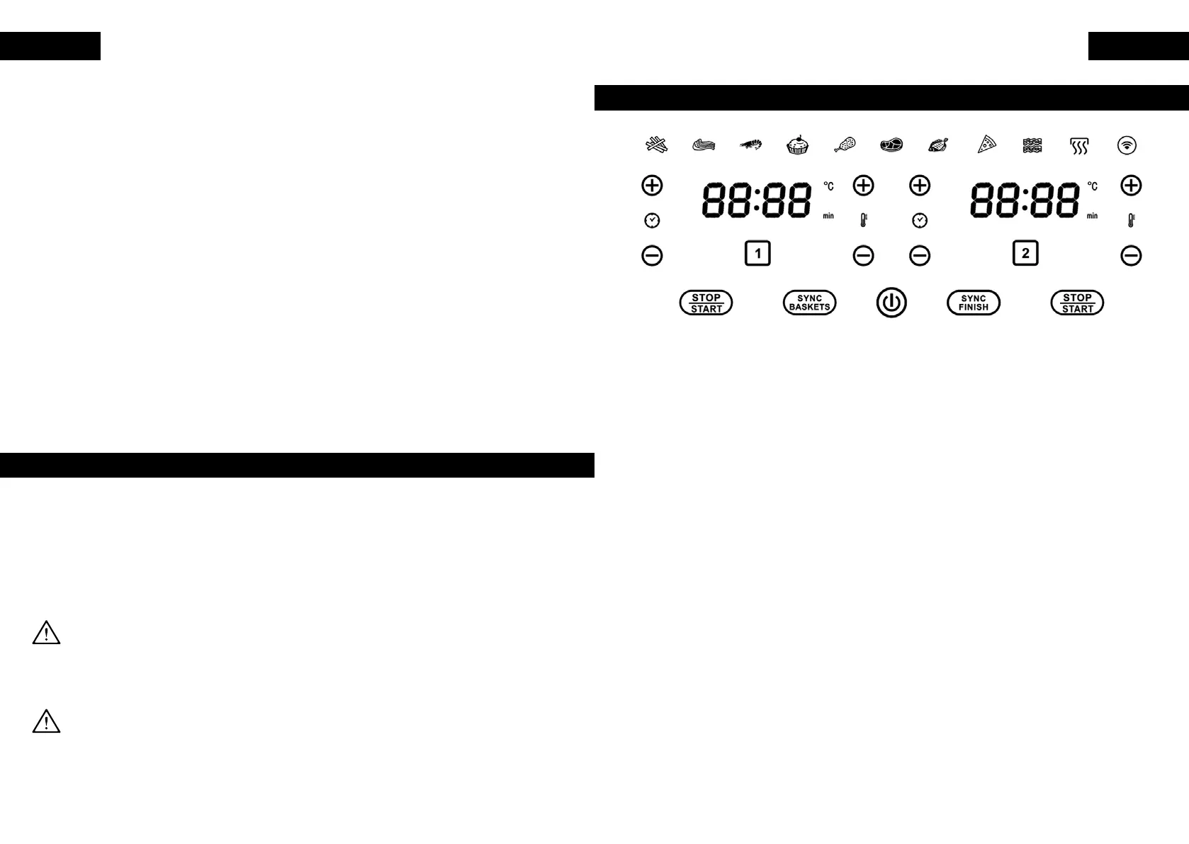 • Berühren Sie Frittierkorb 1 oder 2, um das Bedienfeld für die