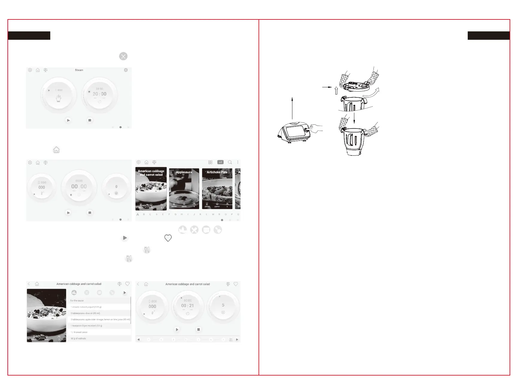 vermelho representa cada passo. Clique em para ver todos os detalhes da receita.