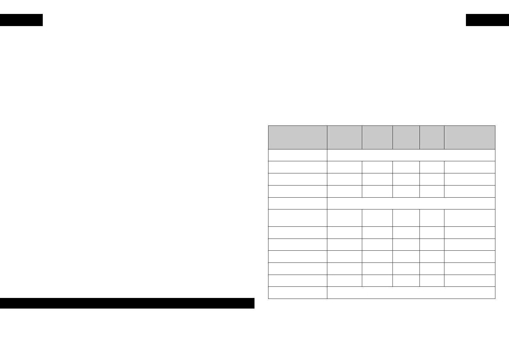 This table below will help you to select the basic settings for the