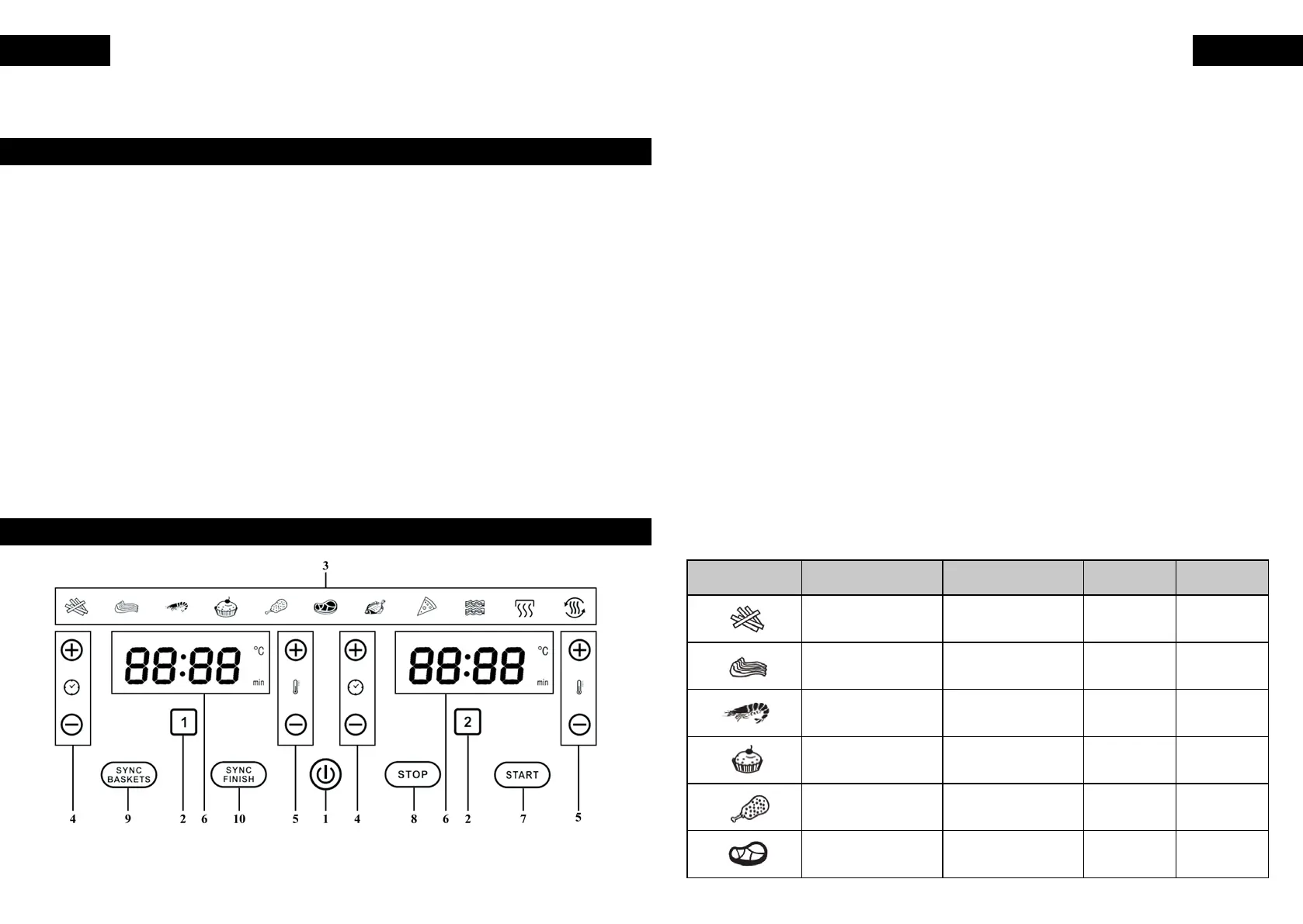 2. Tasten für Frittierbehälter
