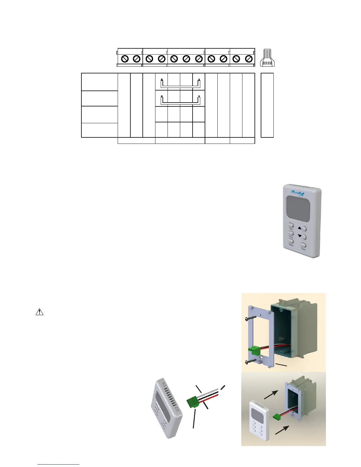 7) Plugtheconnectionterminalintothebackofthewallcontrol.Placethetabsonthemountingplateintotheholesinthetopofthe