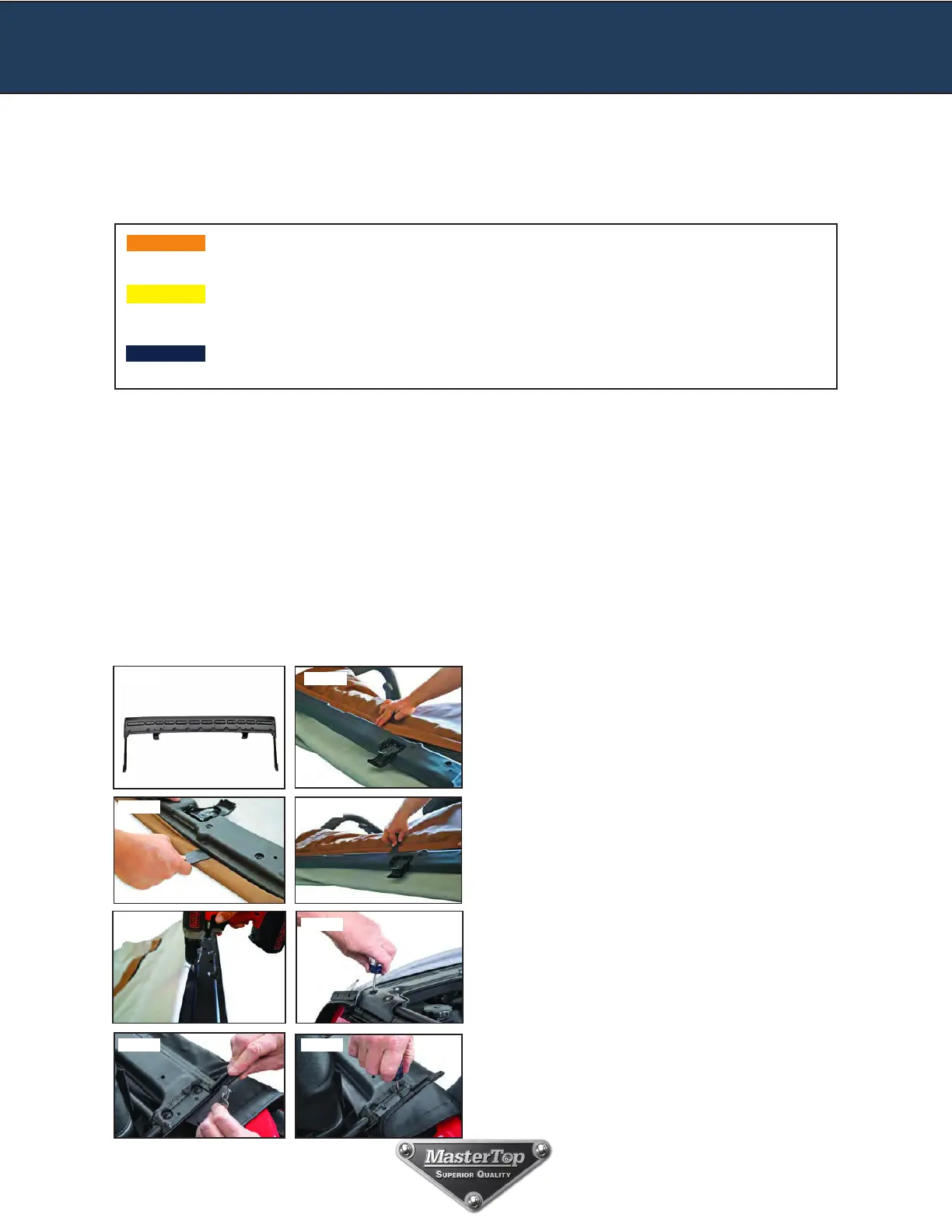We are excited that you have chosen the MasterTop® Replacement Soft Top Hardware Kit. This high-quality hard-