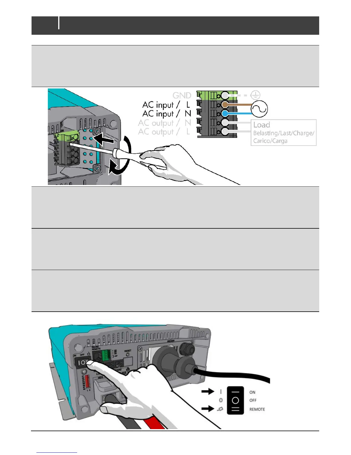 Optional: Verbinden Sie den AC-Eingang, siehe Abschnitt 7 auf Seite 48.