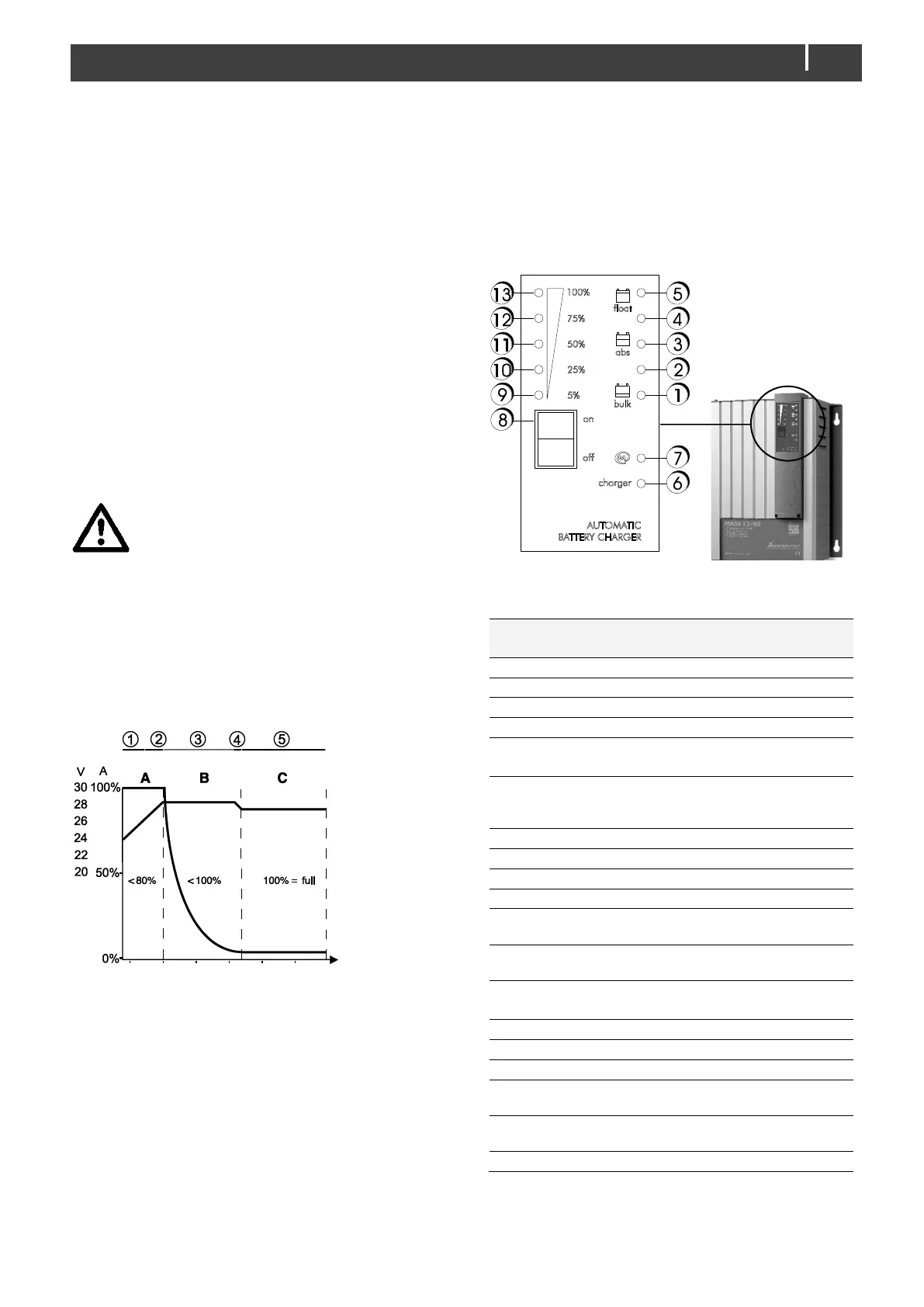 See figure 3. On the front of the Mass Charger LED 9 to 13