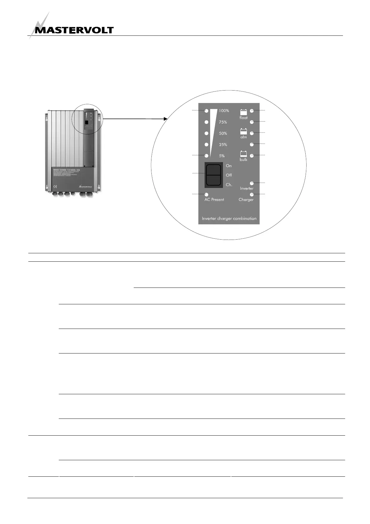 If a failure occurs, the origin of the failure is displayed by means of the LEDs at the front of the Mass Combi.