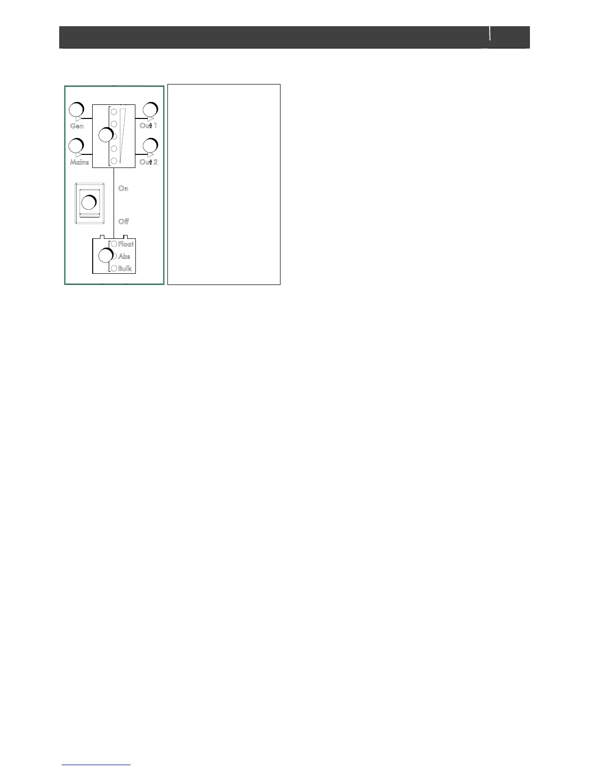 switch controls on, off and Inverter off (Charger only).