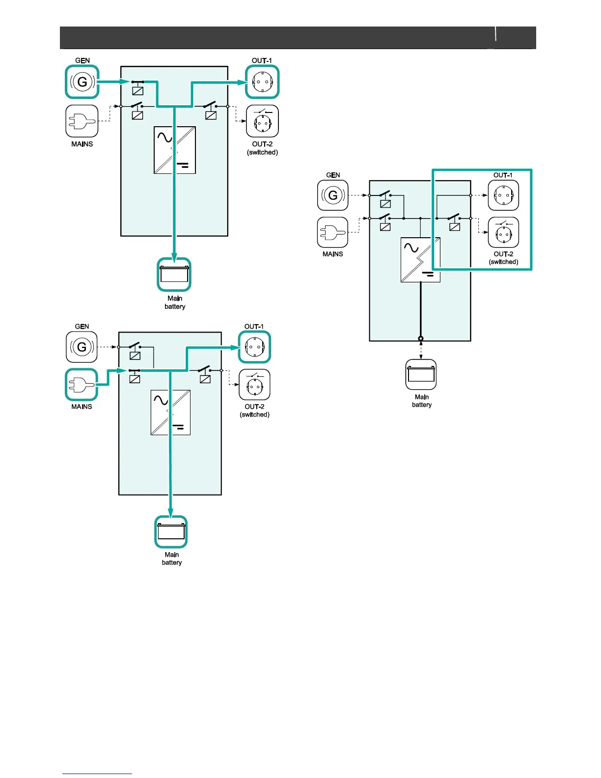 See figure 3-6. The Mass Combi ultra has two AC-outputs.