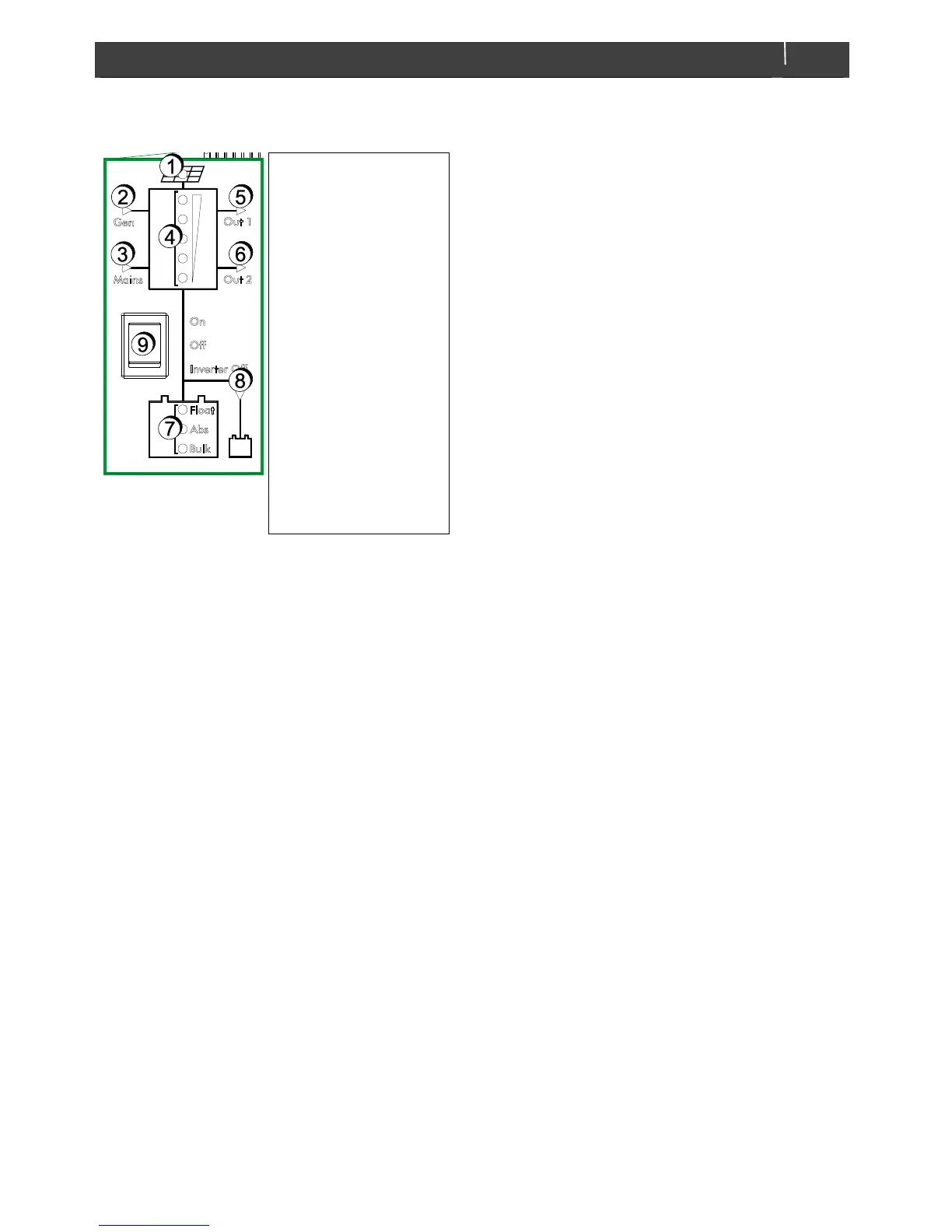 See figure 4-1 item 7. The 3-LED bar has two functions.