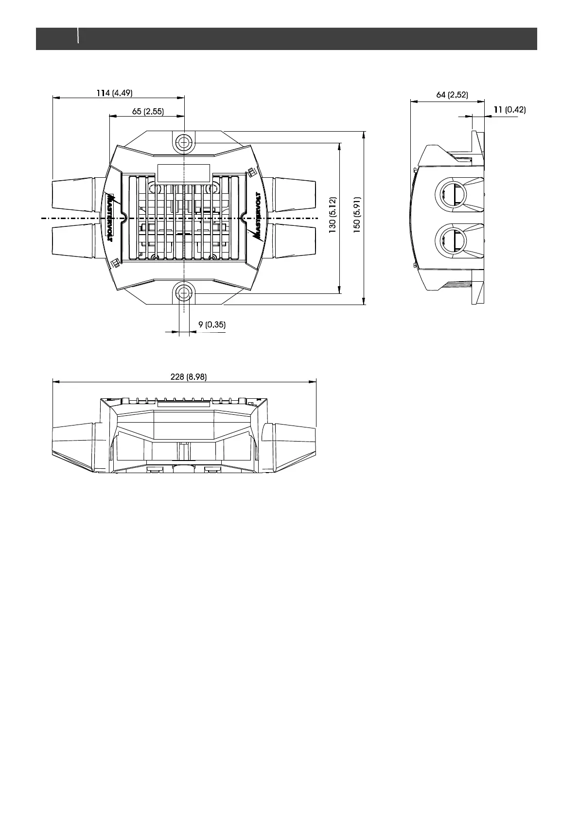 At the back of the MasterShunt 500 casing, the centre-to-centre distance (130mm, 5.12inch) of the mounting holes and DC