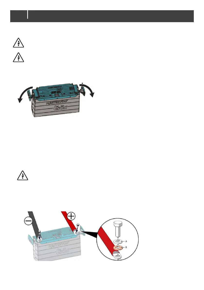 Note: Use properly sized and reliable cables, cable lugs and battery terminals. Tighten all