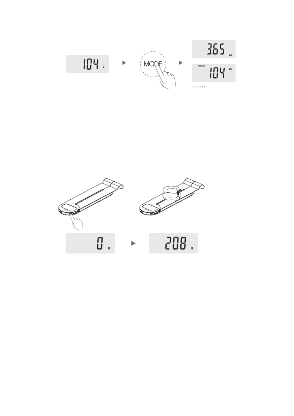 Step 1: put the container on the platform, the LCD display will show the weight of the