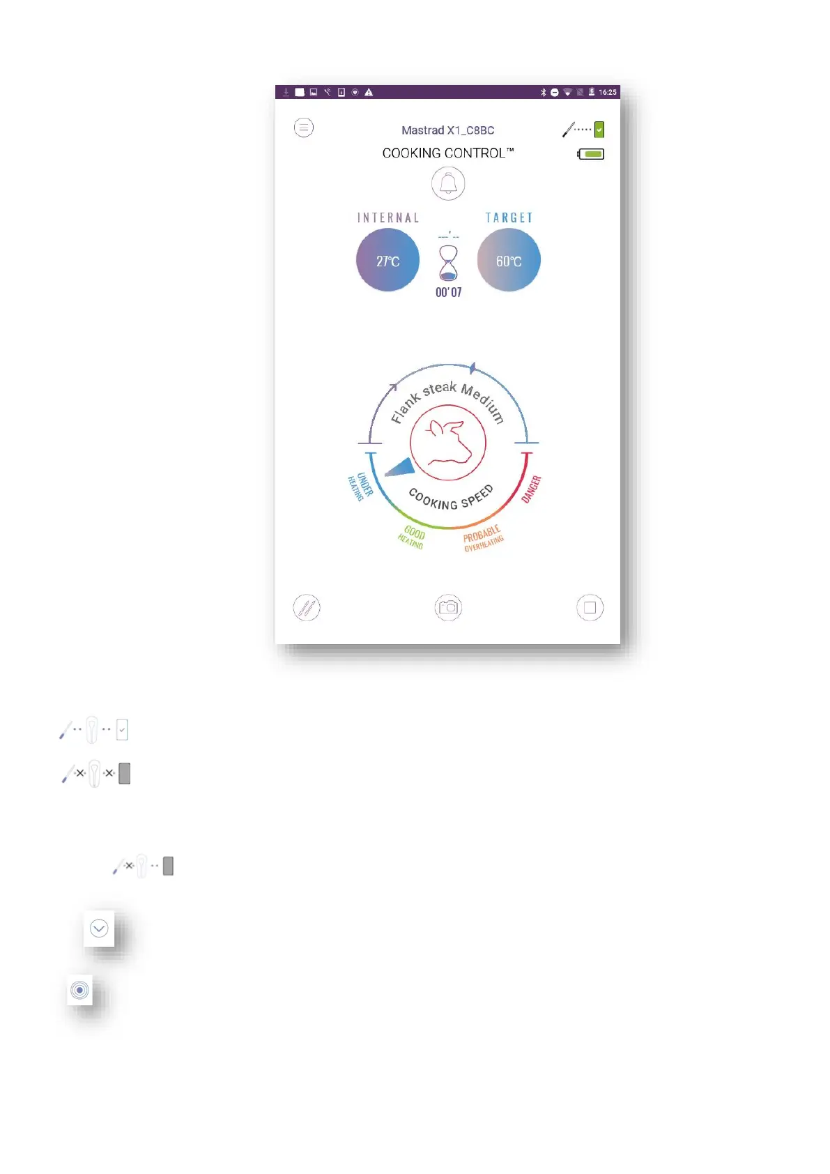 Via this icon, you can check the battery level of the probe, as well as the docking station.