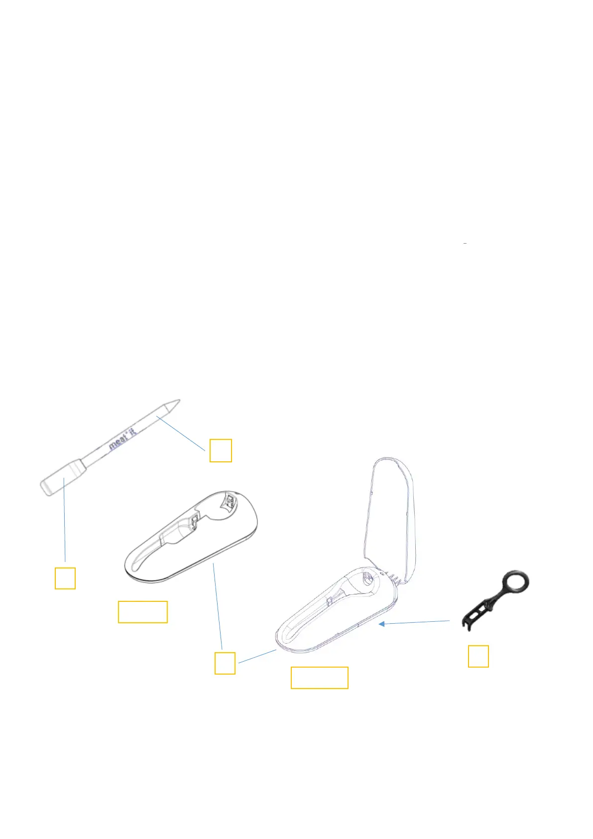 The meat°it and meat°it + probes consist of a wireless probe (A) and (B), a docking station (C), a key (D) to remove