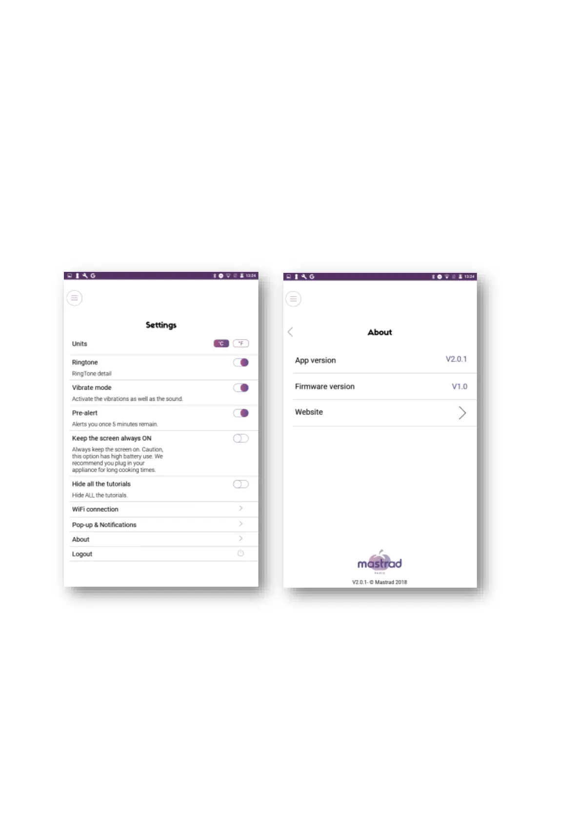• Logout – to log out of the app.