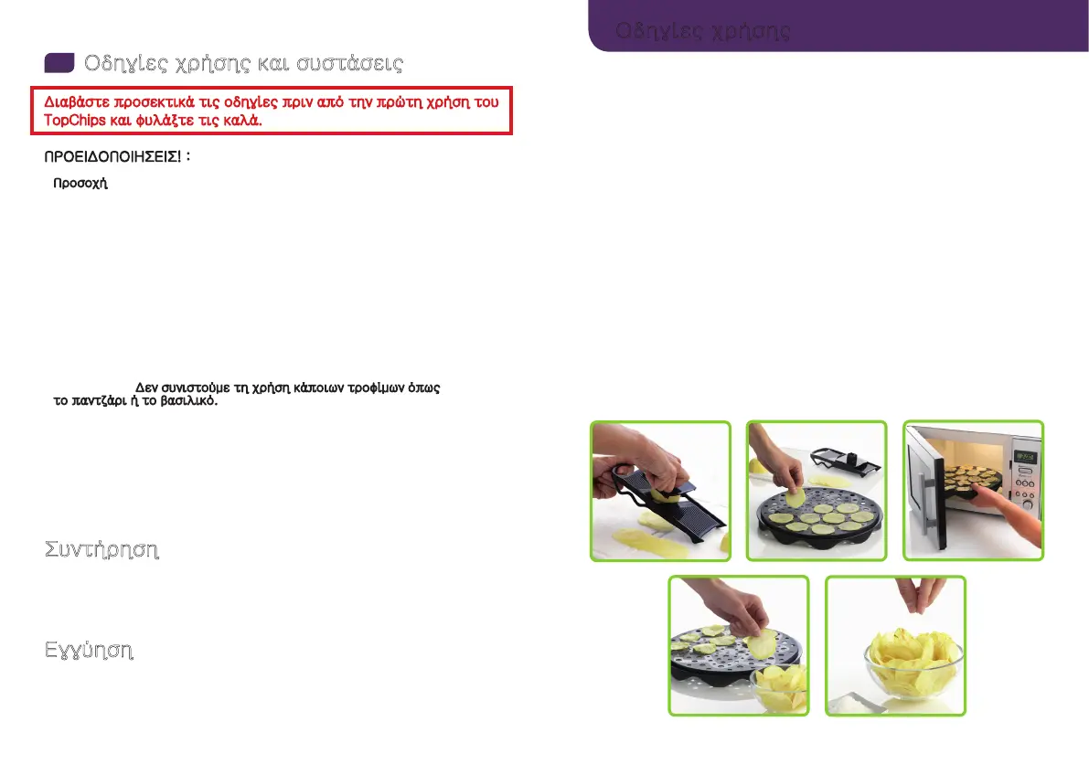 •Ποτέ μην γυρνάτε το Topchips στο φούρνο μικροκυμάτων χωρίς τρόφιμα.