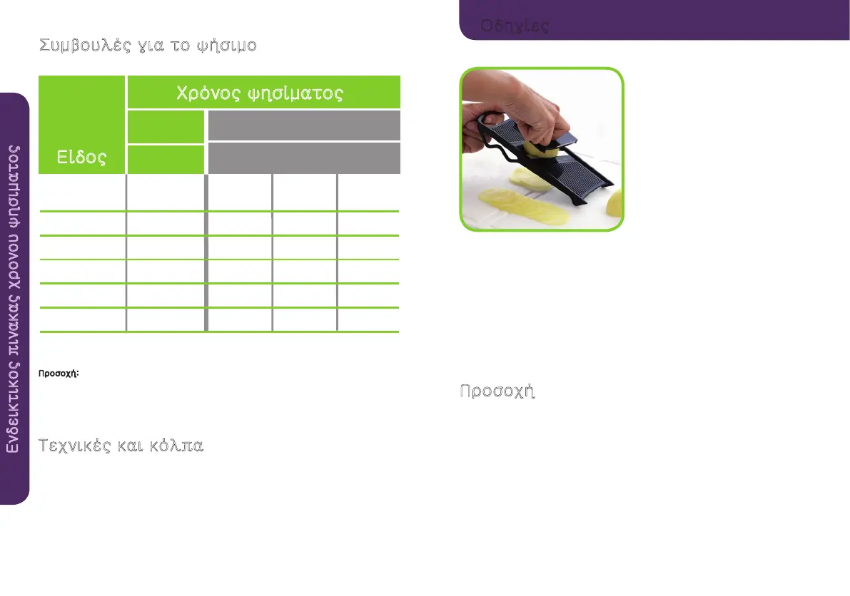 Ακολουθήστε τις οδηγίες ψησίματος του παρακάτω πίνακα.