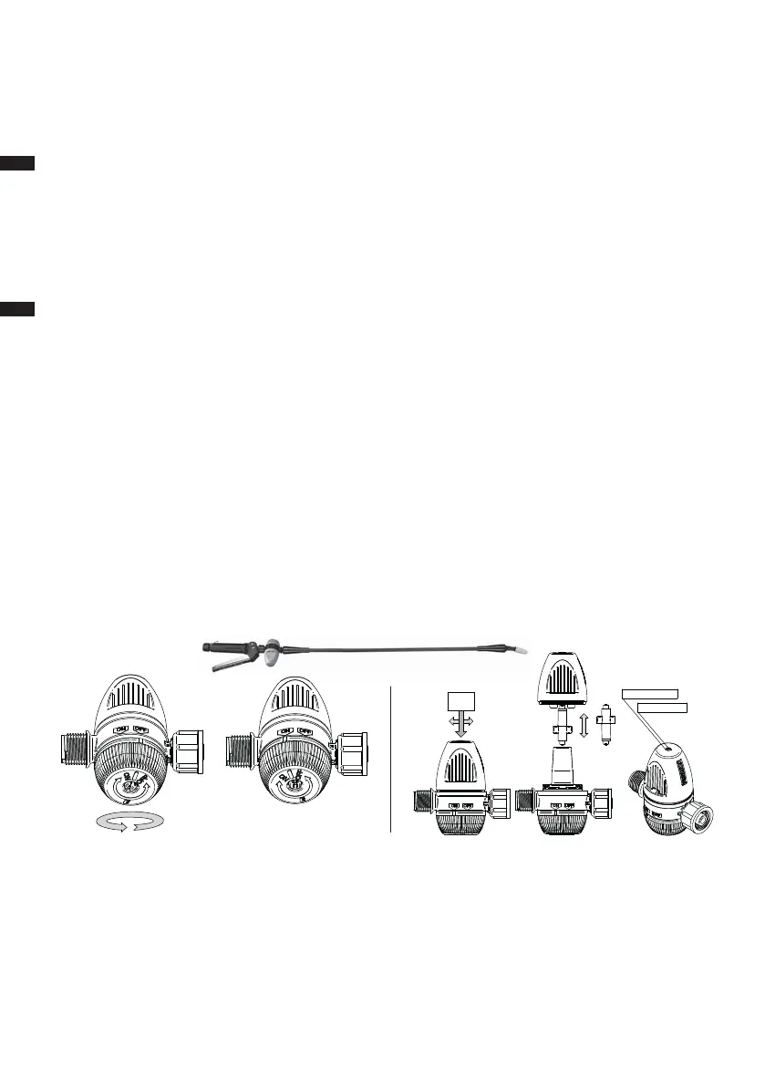 - Poziția OFF garantizează trecerea liberă a lichidului și permite depresurizarea accesoriului.