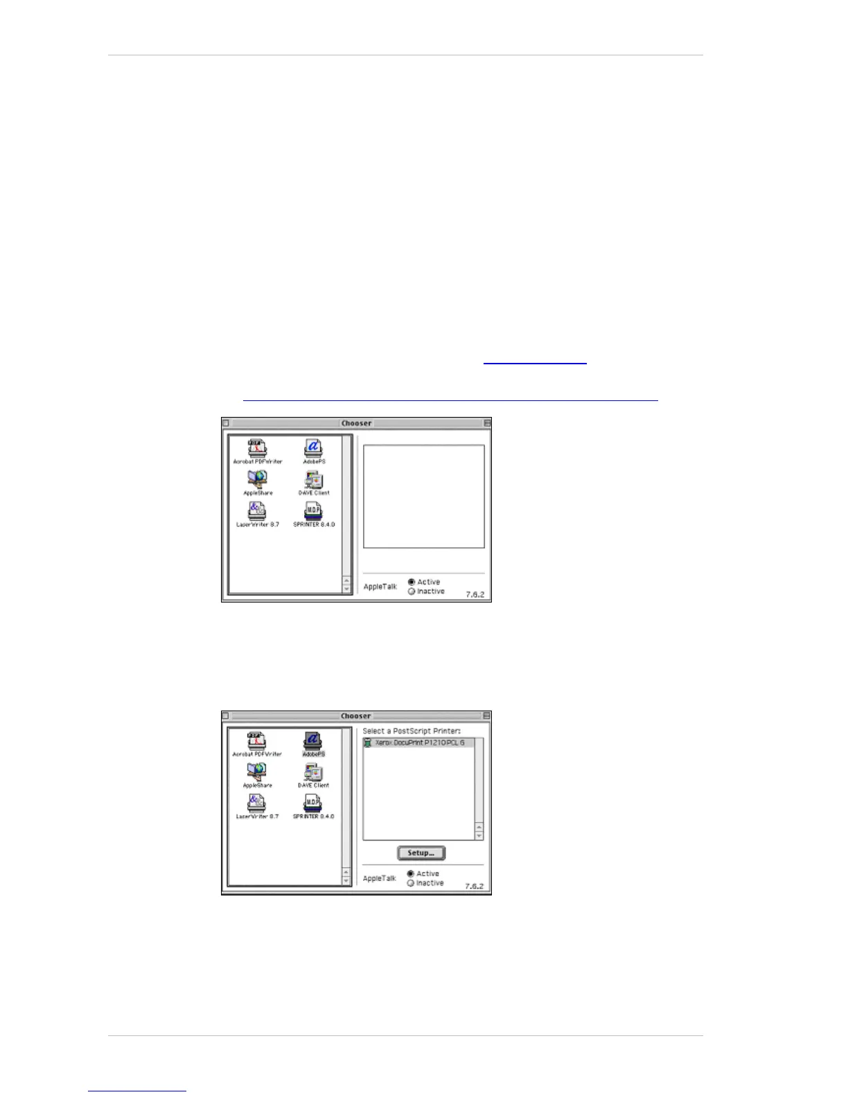 on the AdobePS icon and select one of the available printers. (The