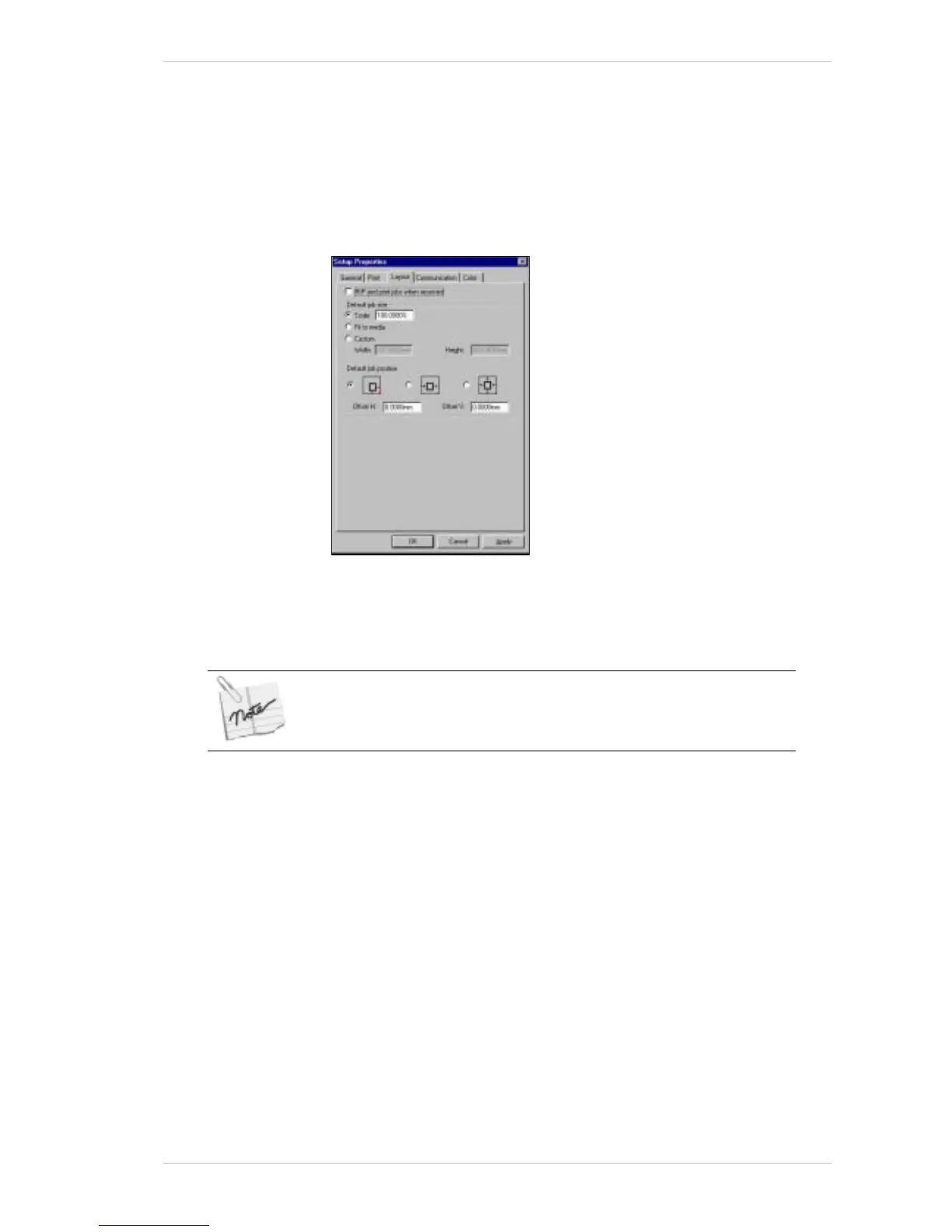 EFAULT JOB SIZE group box, check the SCALE option and set it at