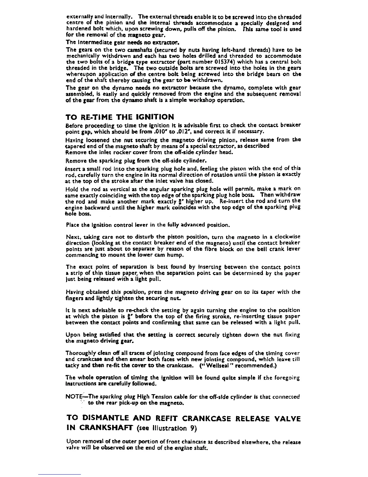 Matchless G11 - To Re-Time the Ignition; To Dismantle and Refit Crankcase Release Valve in Crankshaft