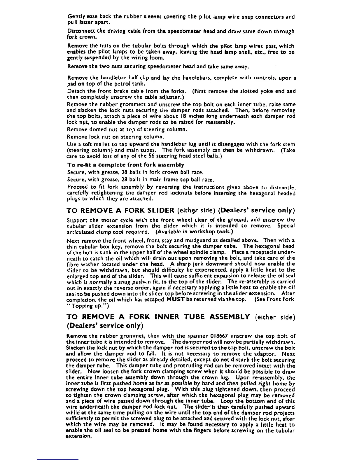 Matchless G11 - To Remove a Fork Slider; To Remove a Fork Inner Tube Assembly