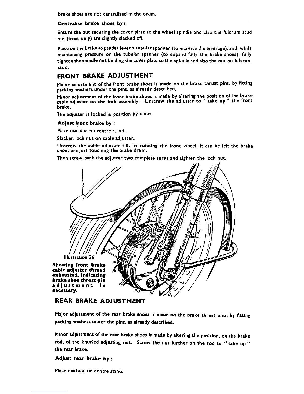Matchless G11 - Front Brake Adjustment; Rear Brake Adjustment