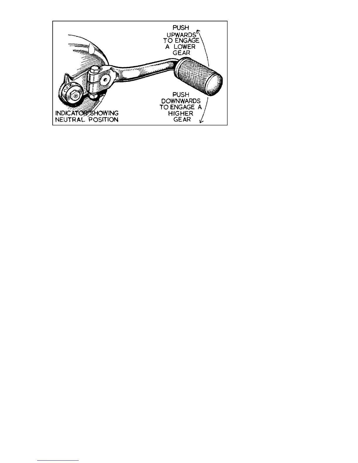 obtained by raising the pedal with the instep. To engage first gear from the neutral