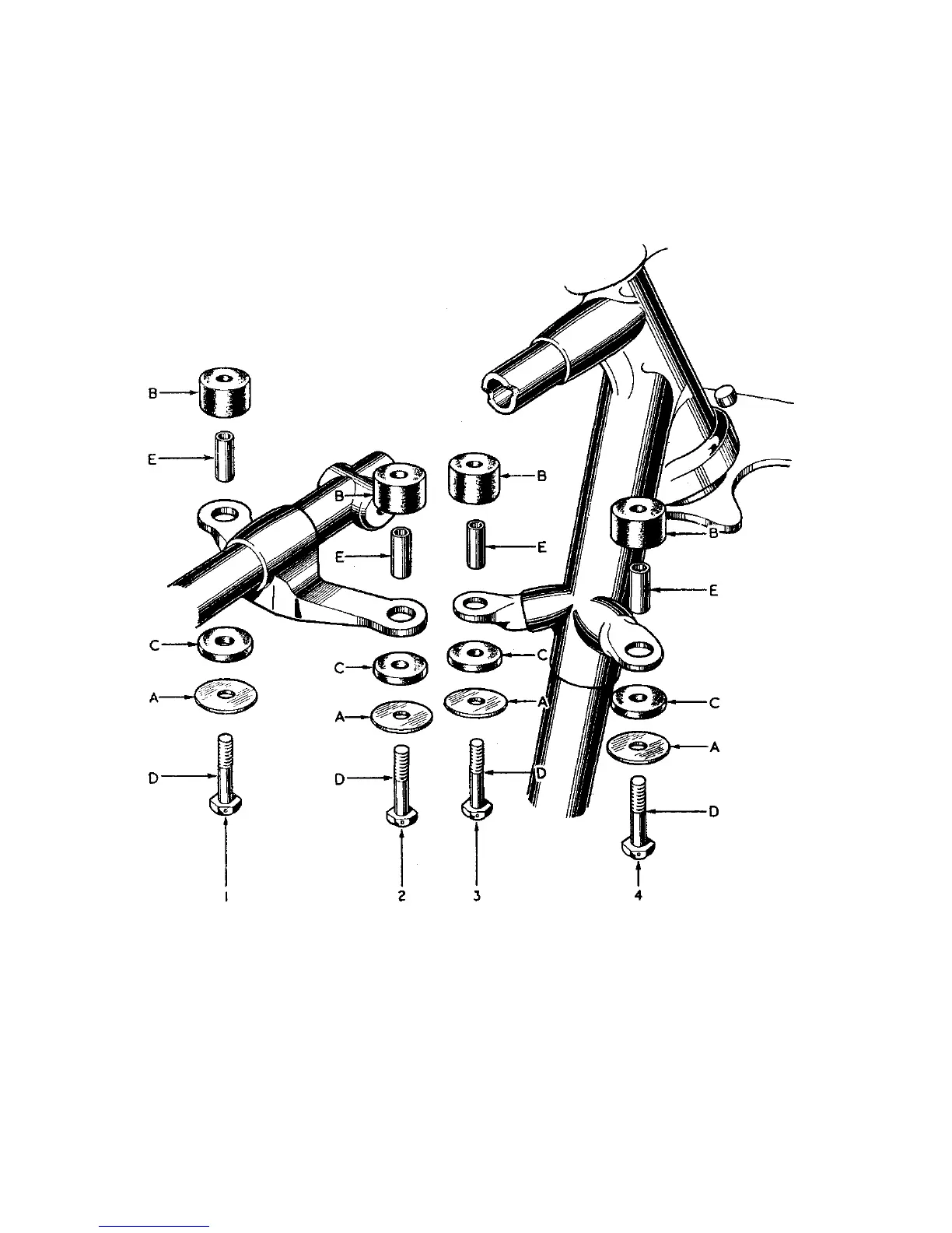 Showing details and order of assembly, of the fuel tank fixing bolts and