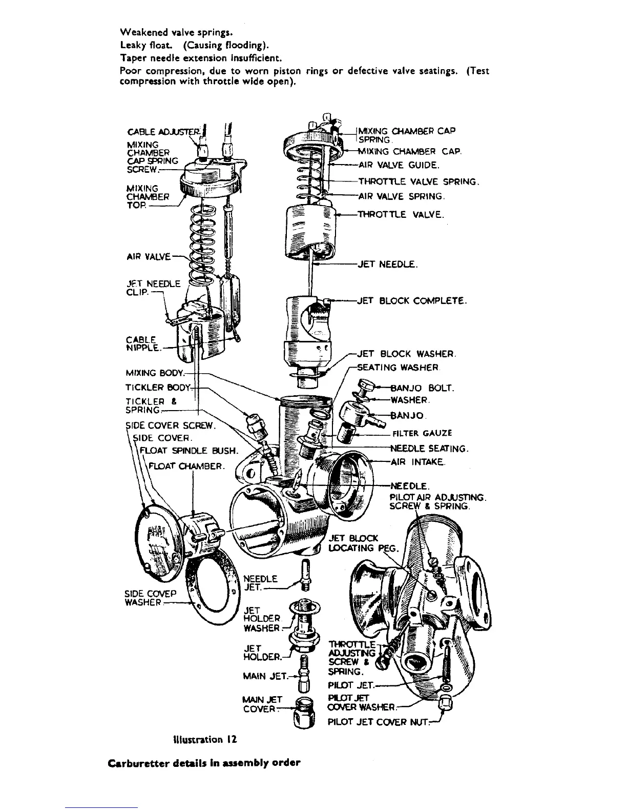 Matchless G9 - Carburetter Details View in Assembly Order