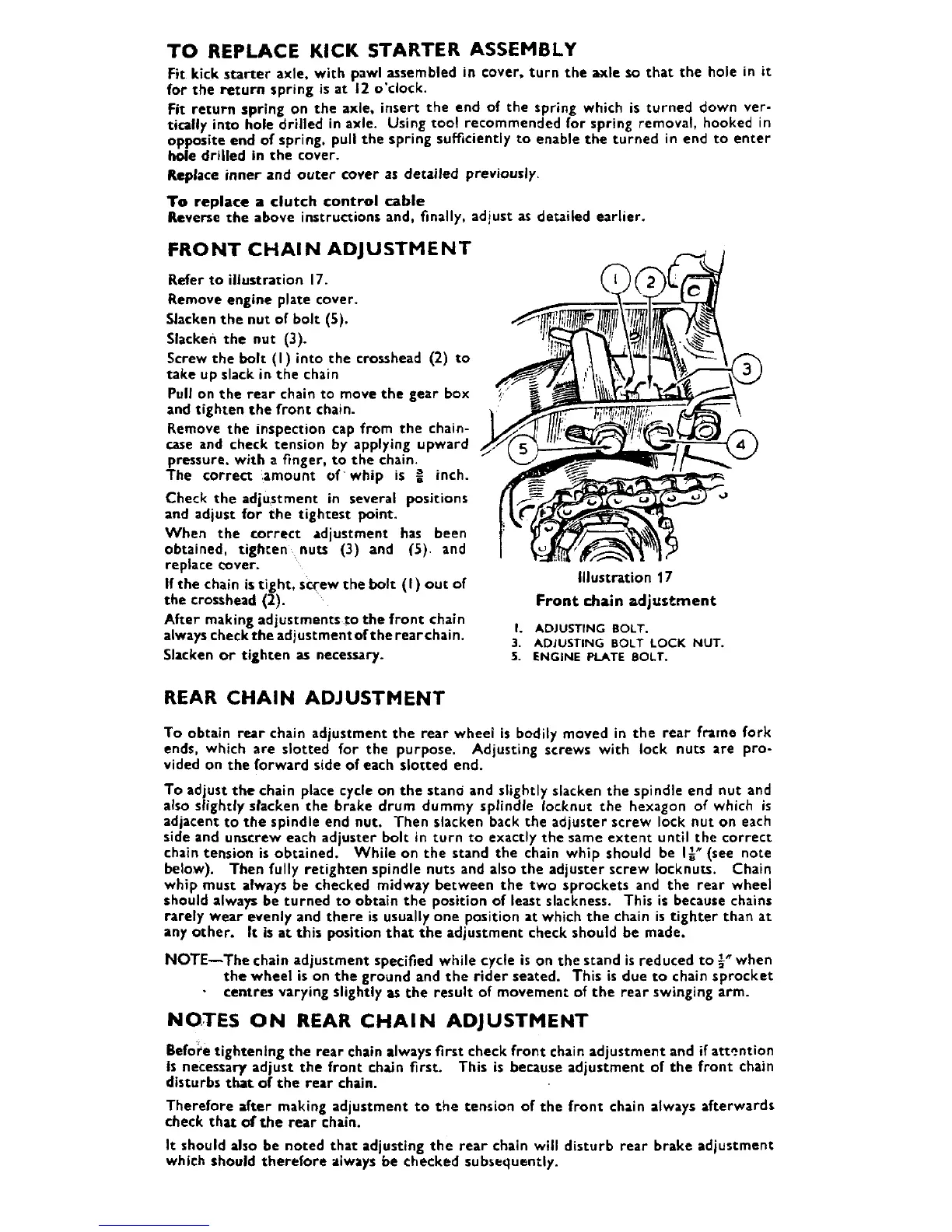 Matchless G9 - To Replace Kick Starter Assembly; Front Chain Adjustment; Rear Chain Adjustment