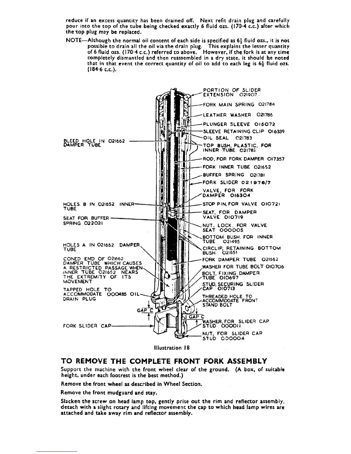 Matchless G9 - To Remove the Complete Front Fork Assembly