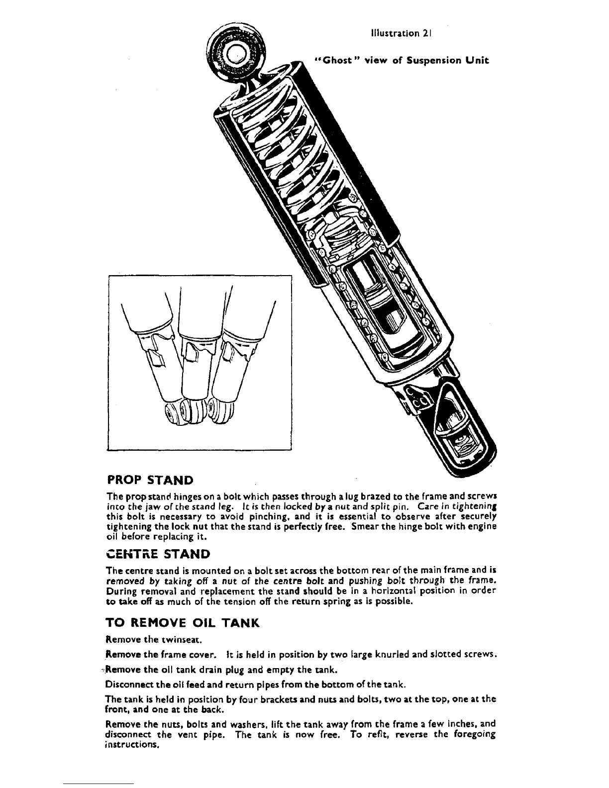 Matchless G9 - Prop Stand; Centre Stand; To Remove Oil Tank