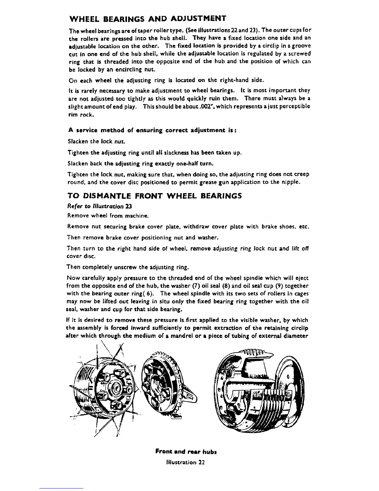 Matchless G9 - Wheel Bearings and Adjustment; To Dismantle Front Wheel Bearings