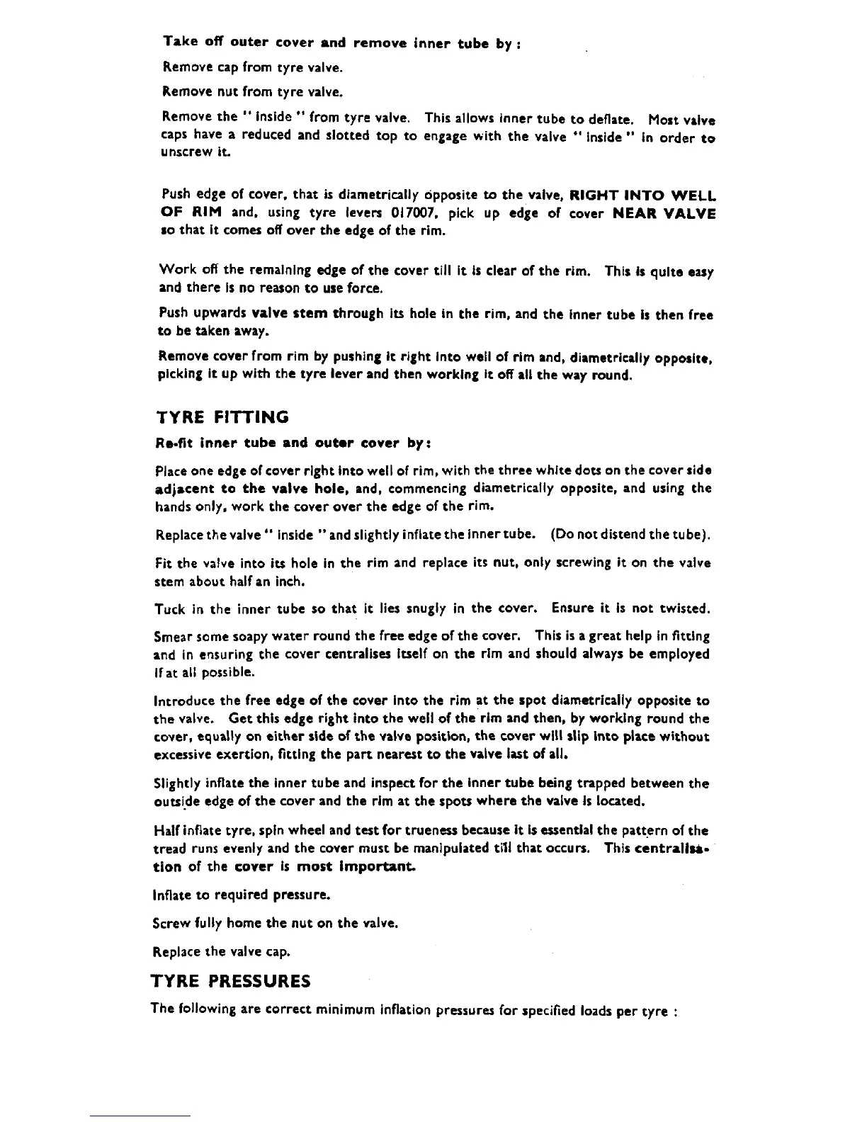 Matchless G9 - Tyre Fitting; Tyre Pressures
