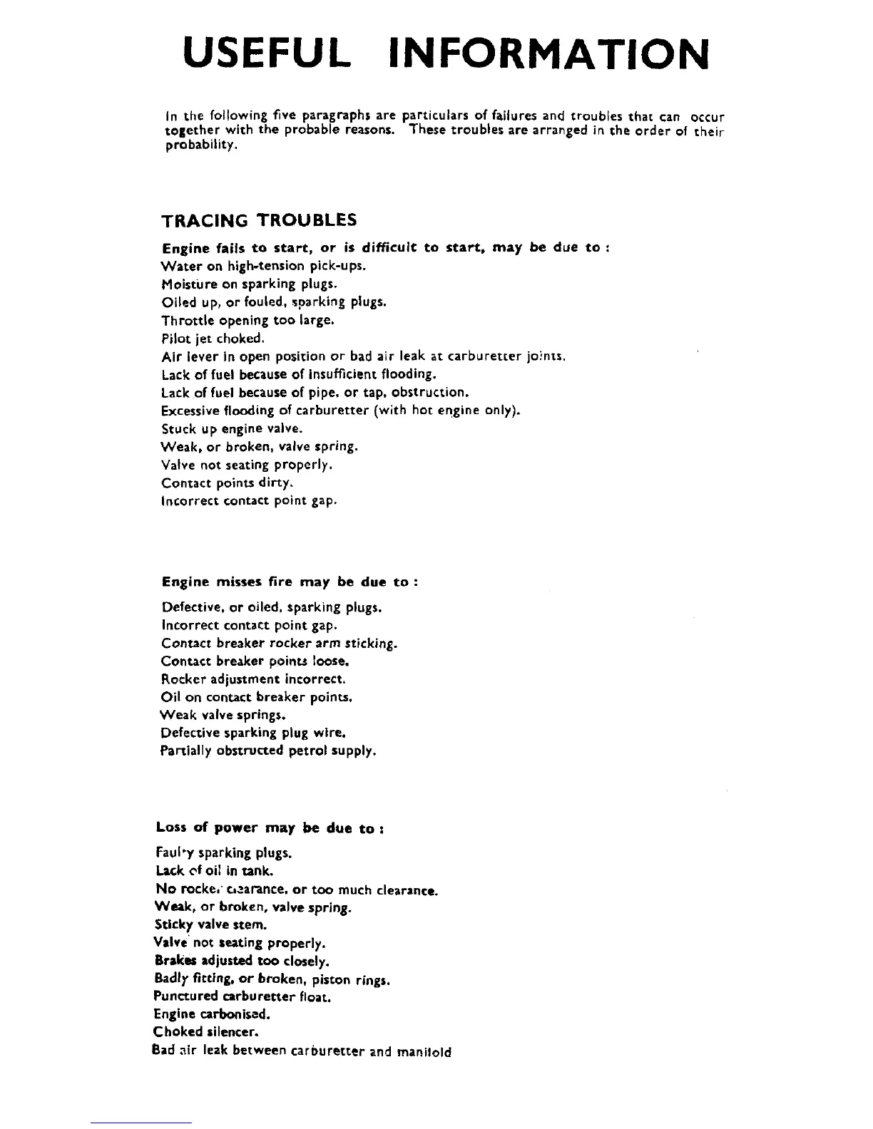 Matchless G9 - Troubleshooting Guide; Engine Starting, Misfire, and Power Issues