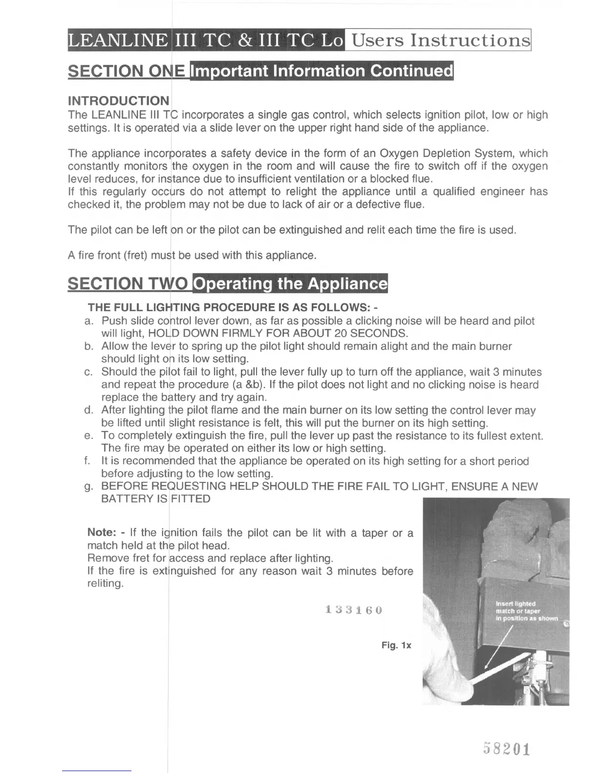 Note: - If the iJnition fails the pilot can be lit with a taper or a