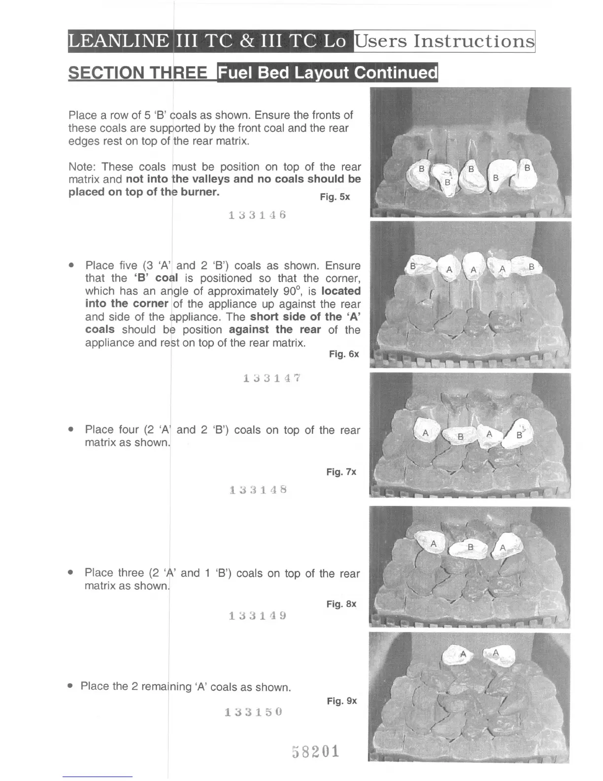 • Place four (2 'A' and 2 'B') coals on top of the rear