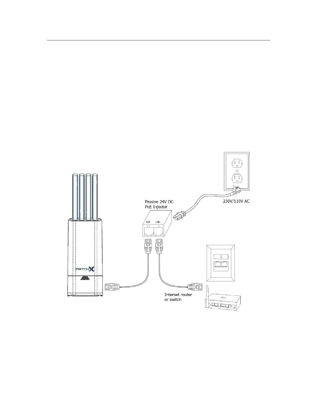 On Figure 2.1 the PoE connection is illustrated. The injector has two RJ45 connectors marked as