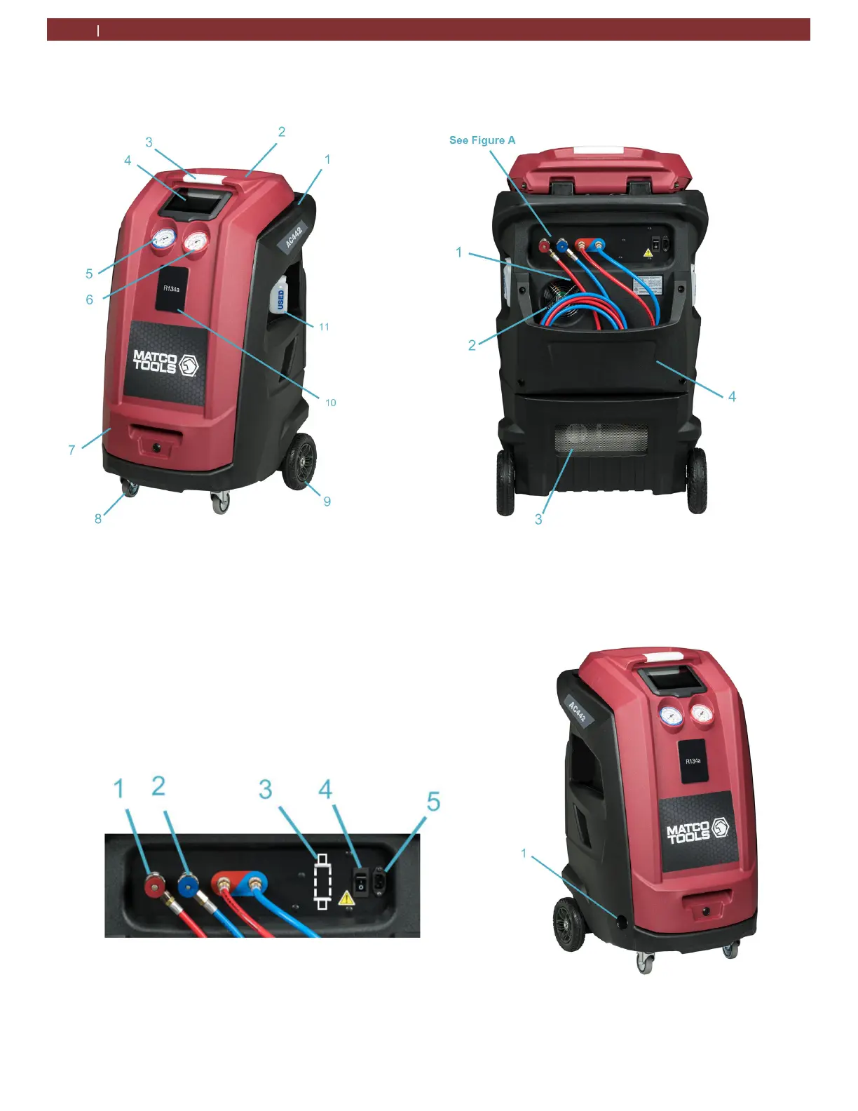 Matco Tools AC442 - Unit Description and Views; Front, Rear, and Connection Views