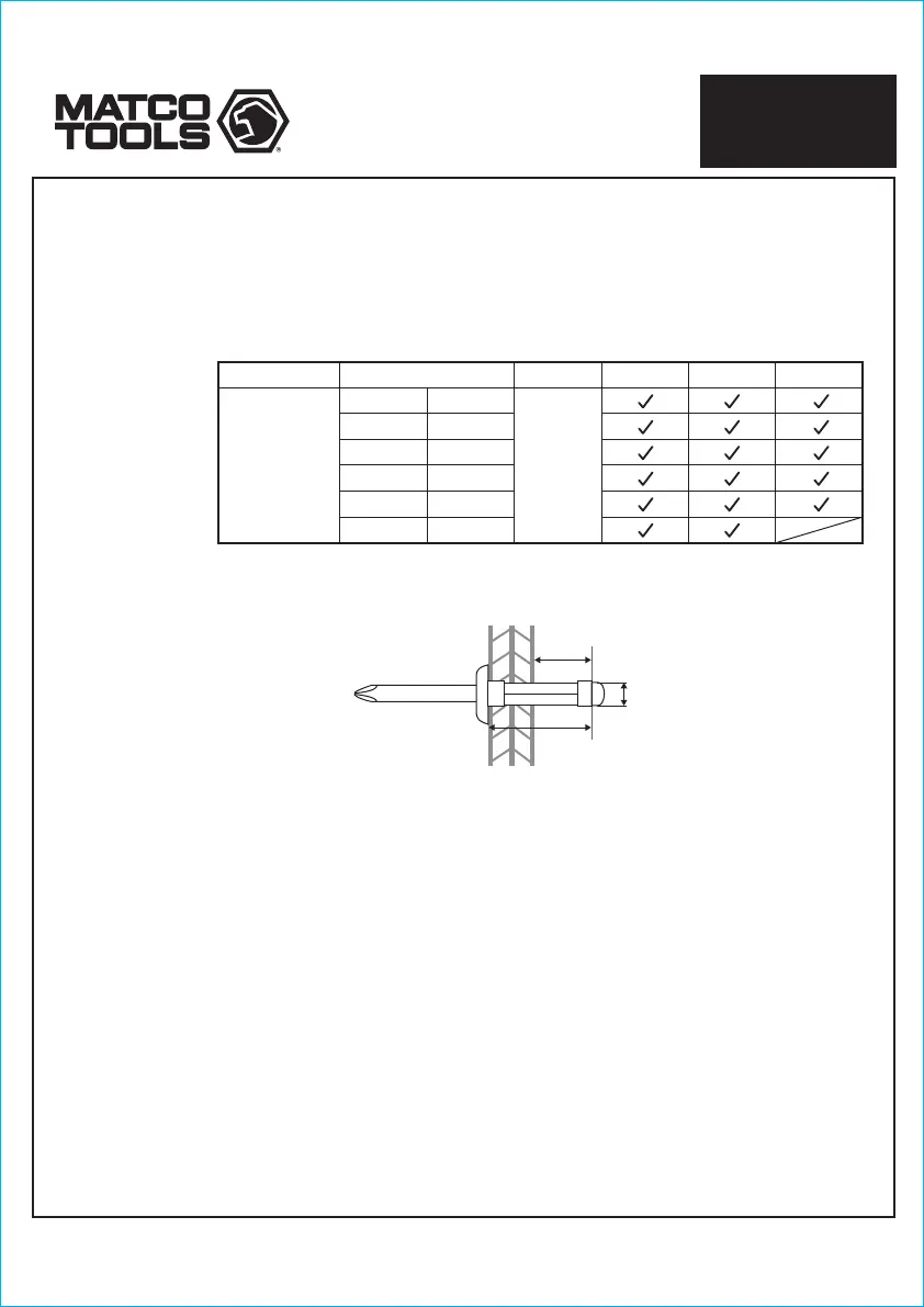 • With maximum torque > 330 in. lbs. for stainless steel rivets up to 3/16" and