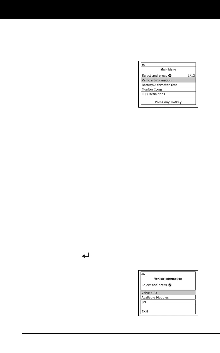 Vehicle Info menu, which lets you