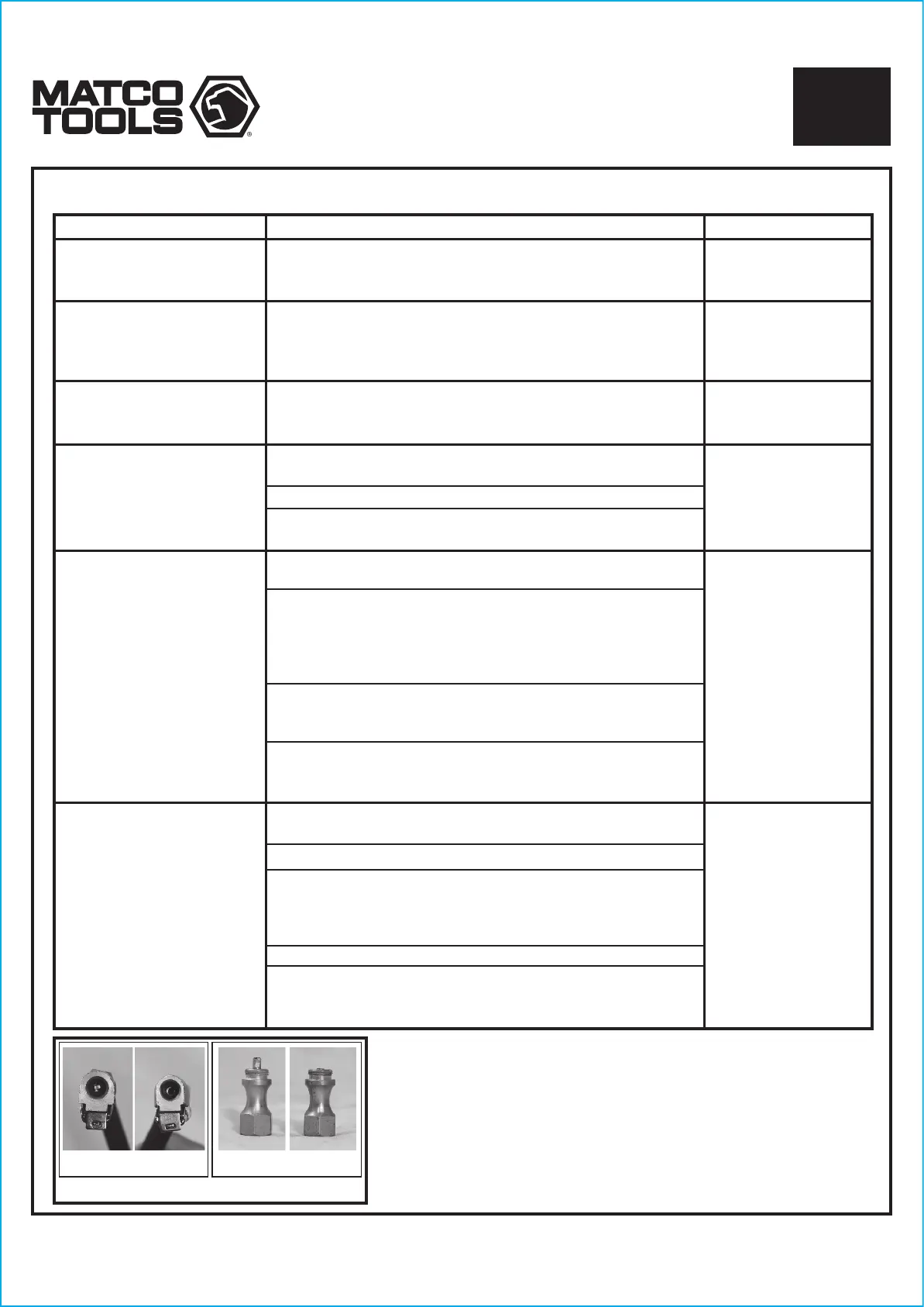 2) Si la clavija está rota ordene la parte # 3018-17 air chuck.