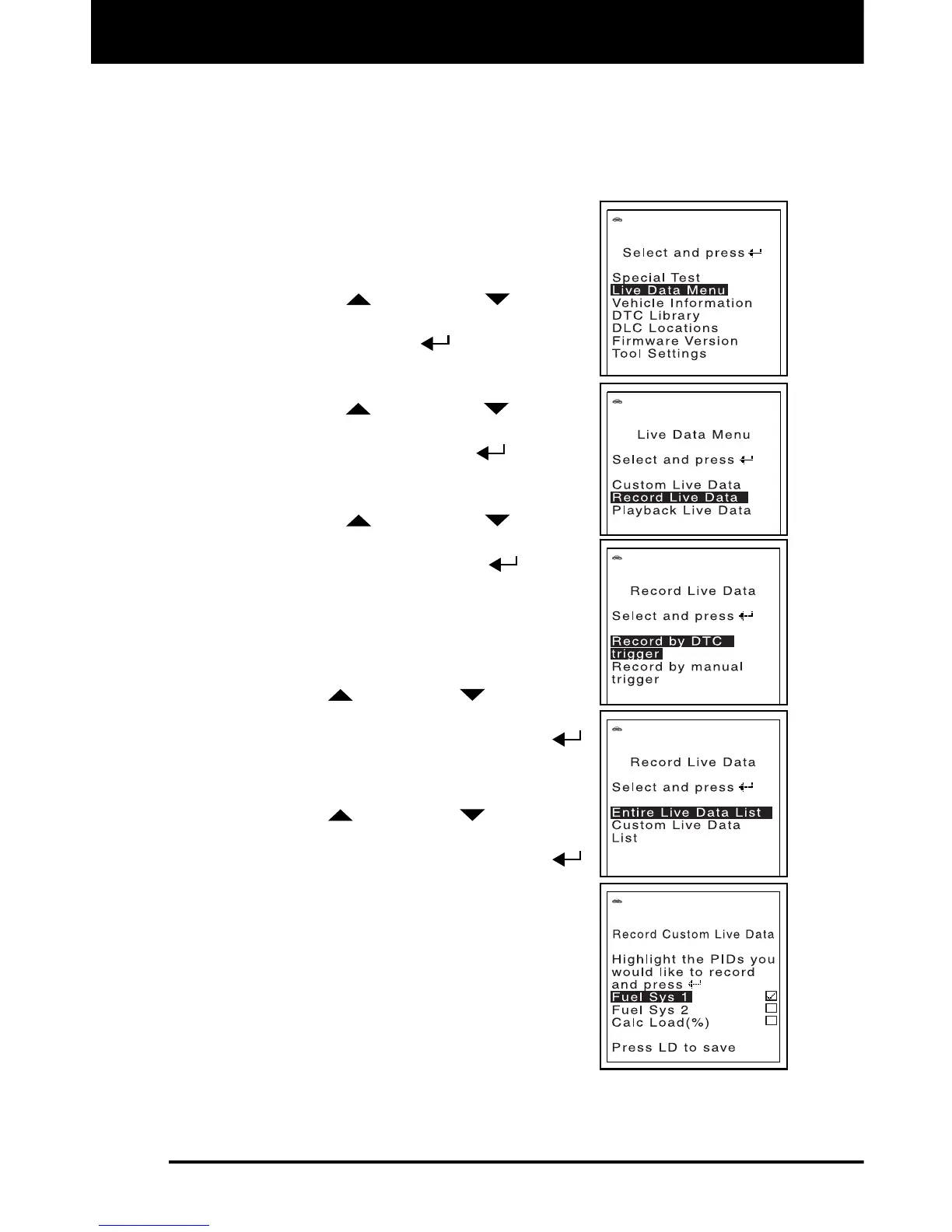 To record the entire Live Data list, use