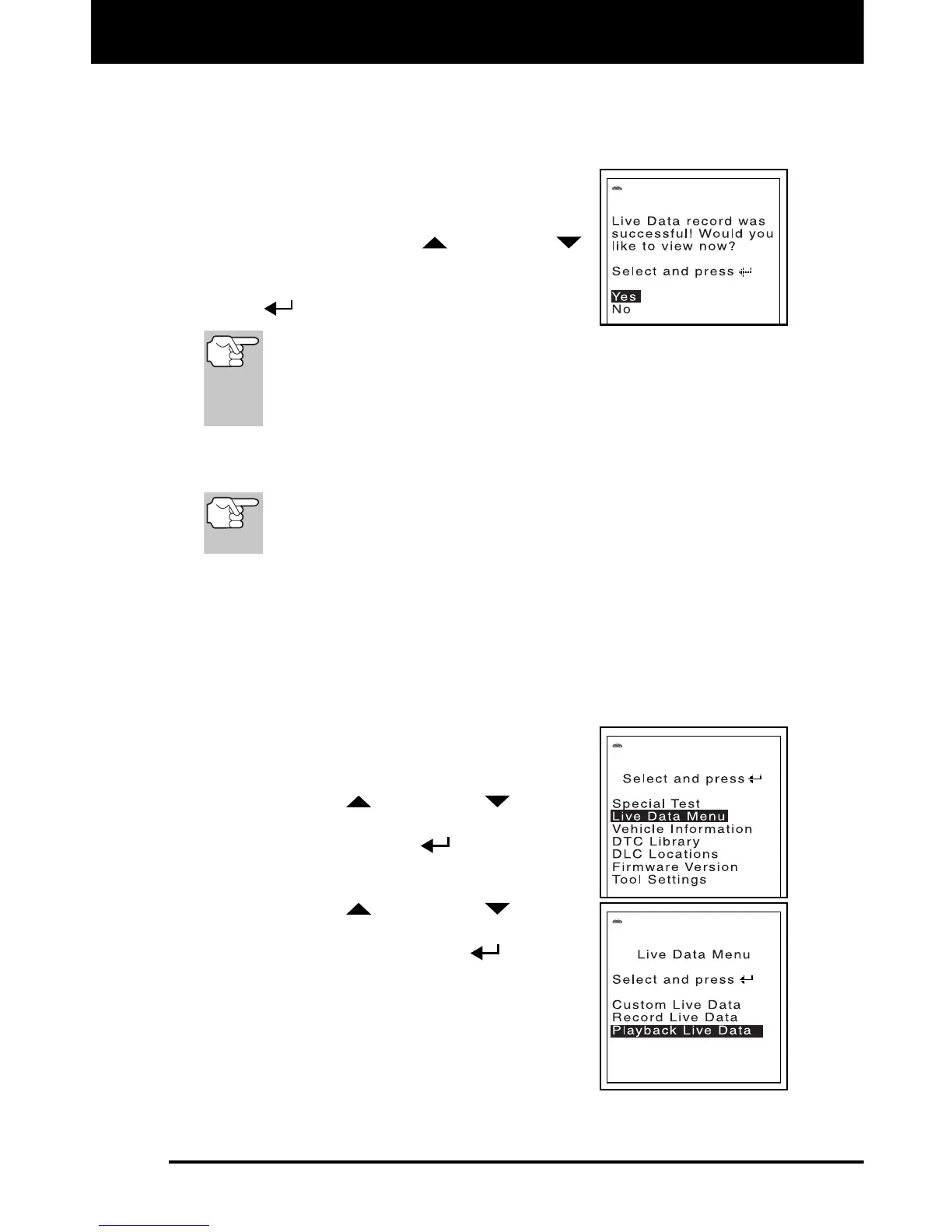 Live Data (see LIVE DATA PLAYBACK on page 69 for details).