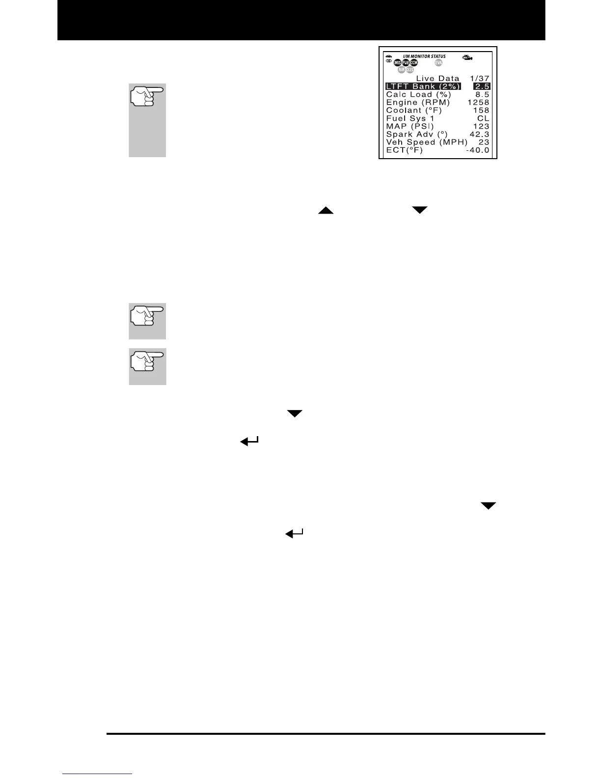 necessary, to scroll up or down to view all available PID data.