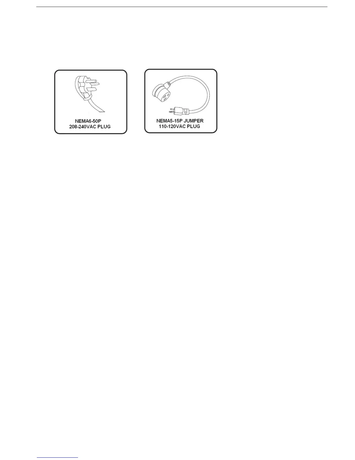 110-120VAC LINE CONNECTION: Machine is provided with NEMA 6-50R to NEMA 5-15P “Jumper”